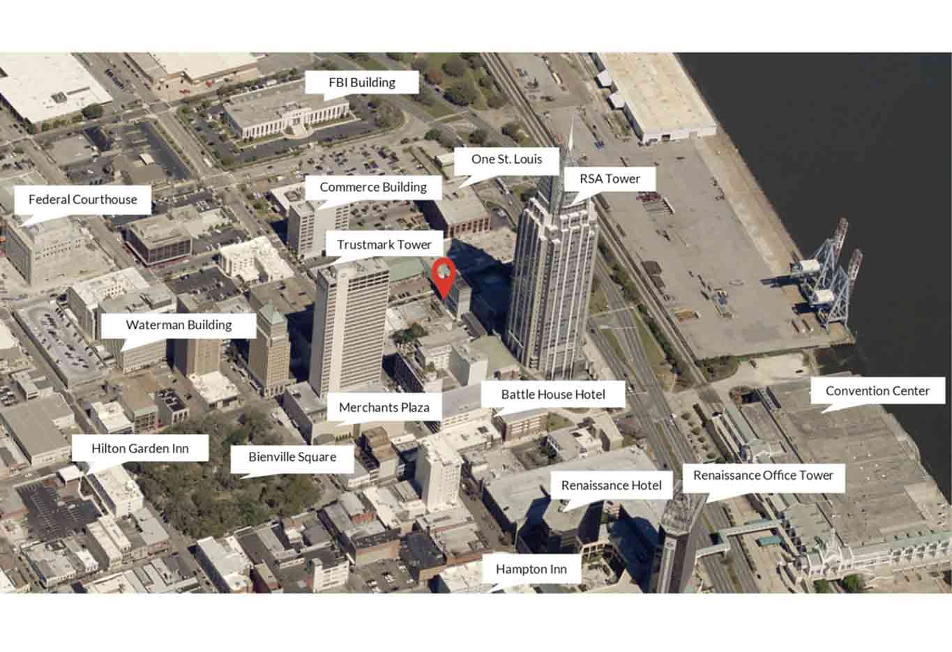 Location, location, location! Located on St. Michael near Royal Street across from the Battle House Hotel and Office Building, YMCA, and numerous hotels and office buildings at the epicenter of downtown.